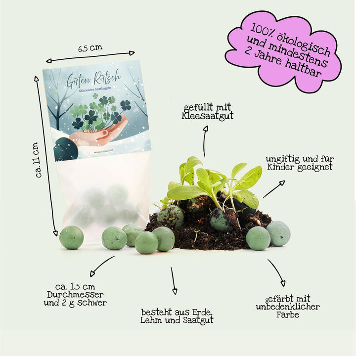 🍀 EXTRA PORTIE GELUK: Met onze zaadbommen steun je de natuur én maak je bijen blij. Gooi ze gewoon in het voorjaar – de klaverzaadjes zorgen voor een extra portie geluk in het nieuwe jaar en brengen leven in je tuin.