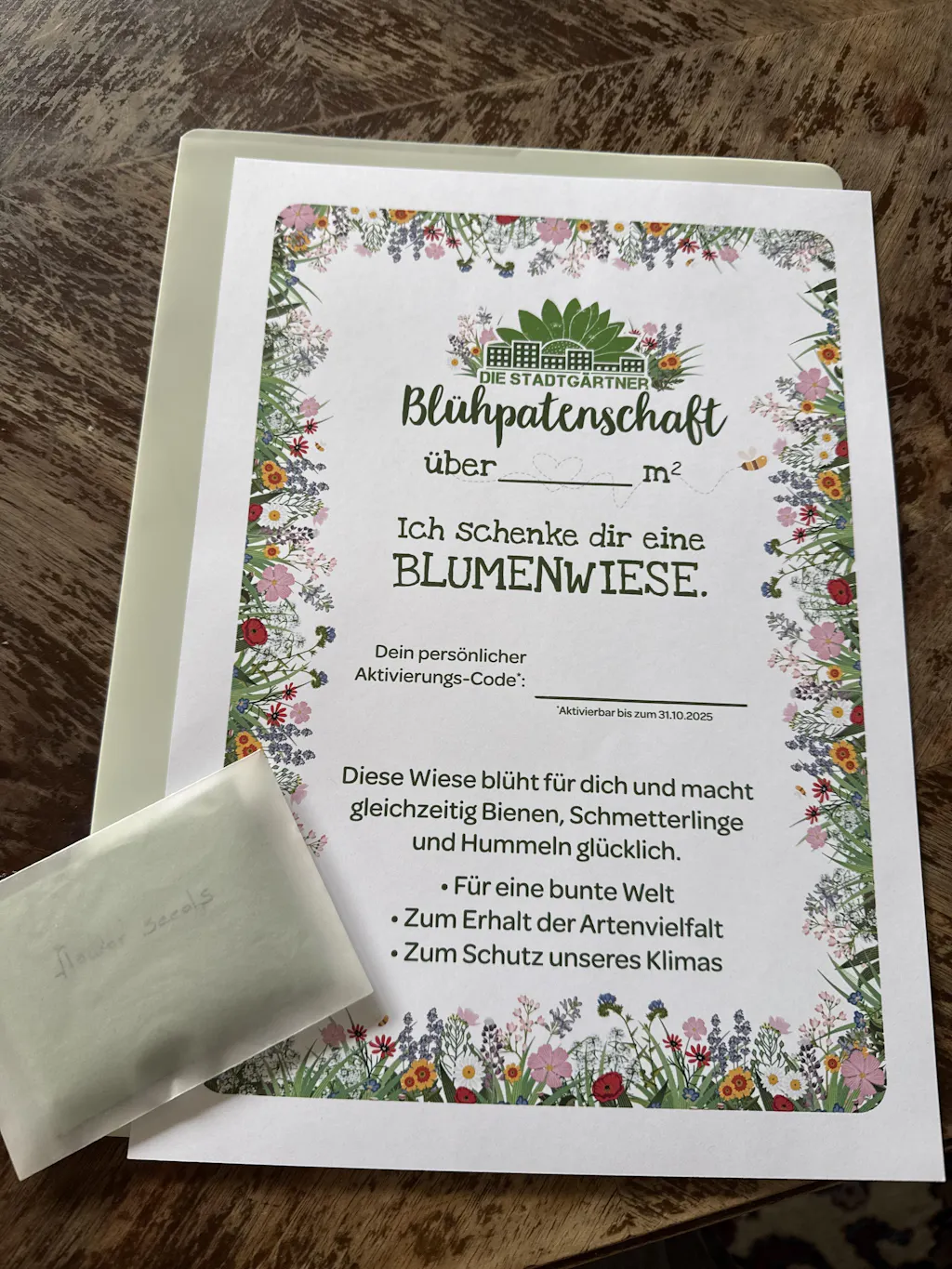 Bloemensponsoring voor 10 m² met een certificaat om zelf af te drukken. U ontvangt de PDF en de code direct na aankoop.