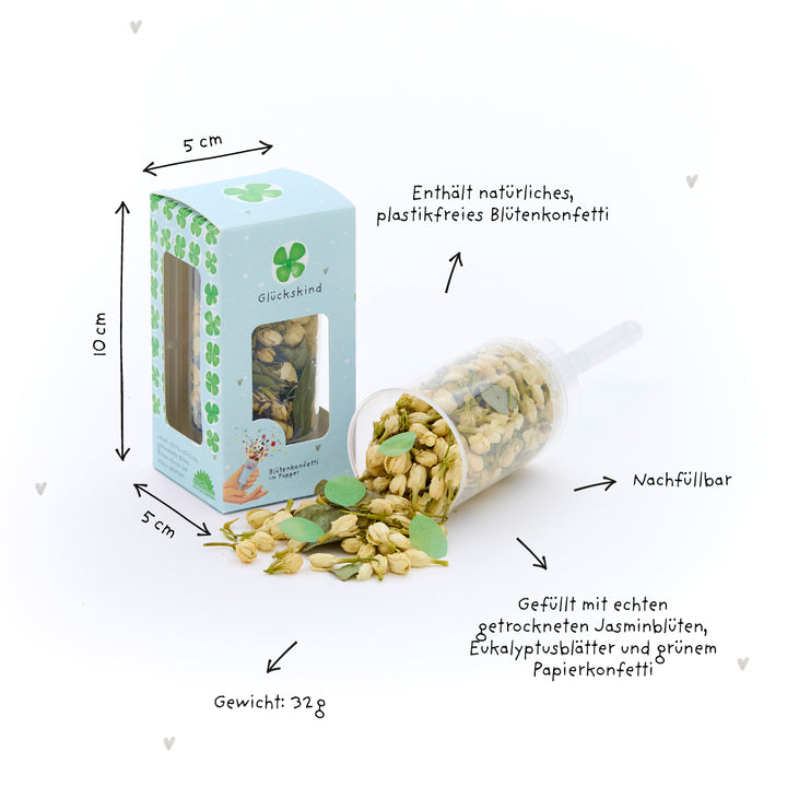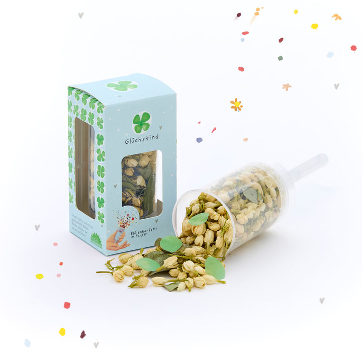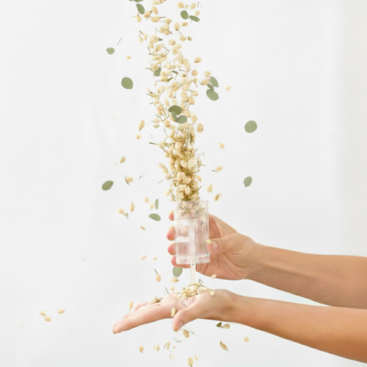 Laat geluk vliegen : steek de steel erin, sla er flink op – en het duurzame bloemenconfetti vliegt door de lucht. Een emotioneel verrassingsmoment dat laat zien: ik geloof in jou! Of het nu als verrassing ter plekke is, om samen te vieren of als liefdevol cadeau: deze confettikanon tovert moed, vreugde en een glimlach op elk gezicht.