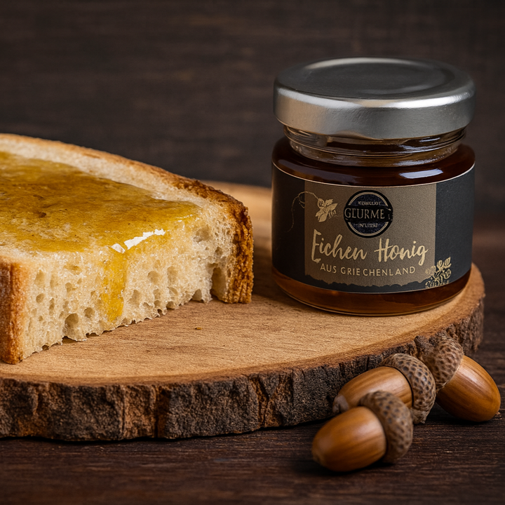 Hol dir einen kleinen Vorgeschmack auf Griechenlands Natur mit unserem Mini Eichen Honig. Dieser besondere Waldhonig wird in den Eichenwäldern Griechenlands gesammelt und überzeugt mit seinem kräftigen, leicht herben Geschmack. In der praktischen 40g Probiergröße eignet er sich ideal, um diese besondere Spezialität kennenzulernen. Eichenhonig ist reich an natürlichen Antioxidantien und hat eine besonders intensive, leicht malzige Note. Ob zu Käse, auf dunklem Brot oder als feine Zutat in Dressings und Soßen – dieser Honig ist vielseitig einsetzbar und sorgt für das gewisse Extra.