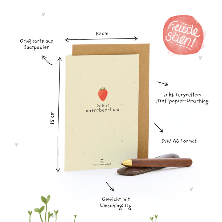 Duurzaam & plasticvrij : De kaart is gemaakt van composteerbaar zaadpapier, de envelop van kraftpapier en de hoes is biologisch afbreekbaar - een bijzondere groet met hart en impact.