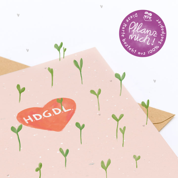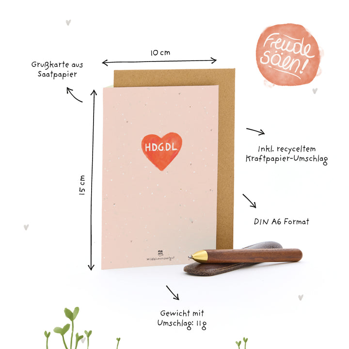 Duurzaam & plasticvrij : De kaart is gemaakt van composteerbaar zaadpapier, de envelop is van kraftpapier en de hoes is biologisch afbreekbaar - een lieve groet met hart en houding.