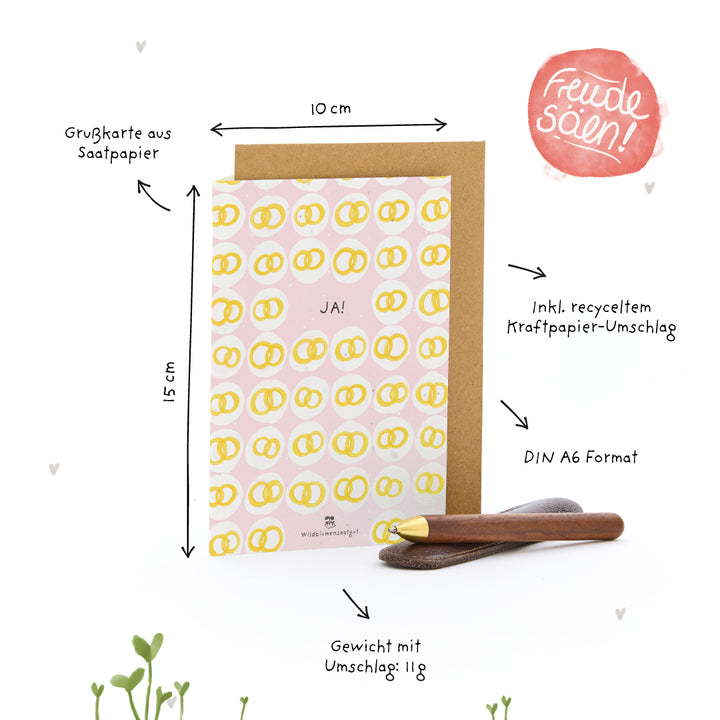 Duurzaam & plasticvrij : De kaart is gemaakt van composteerbaar zaadpapier, de envelop van kraftpapier en de hoes is biologisch afbreekbaar - een huwelijksgroet die vreugde brengt en de liefde verder laat groeien.