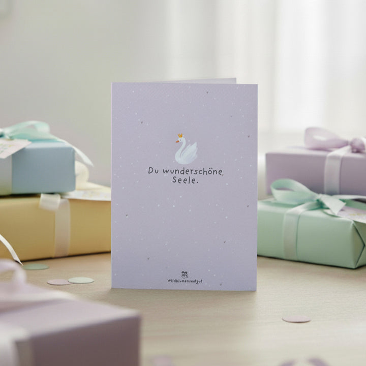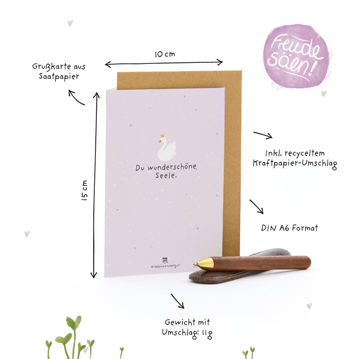 Duurzaam & plasticvrij : De kaart is gemaakt van composteerbaar zaadpapier, de envelop van kraftpapier en de hoes is biologisch afbreekbaar - een attent gebaar dat hart en natuur verbindt.