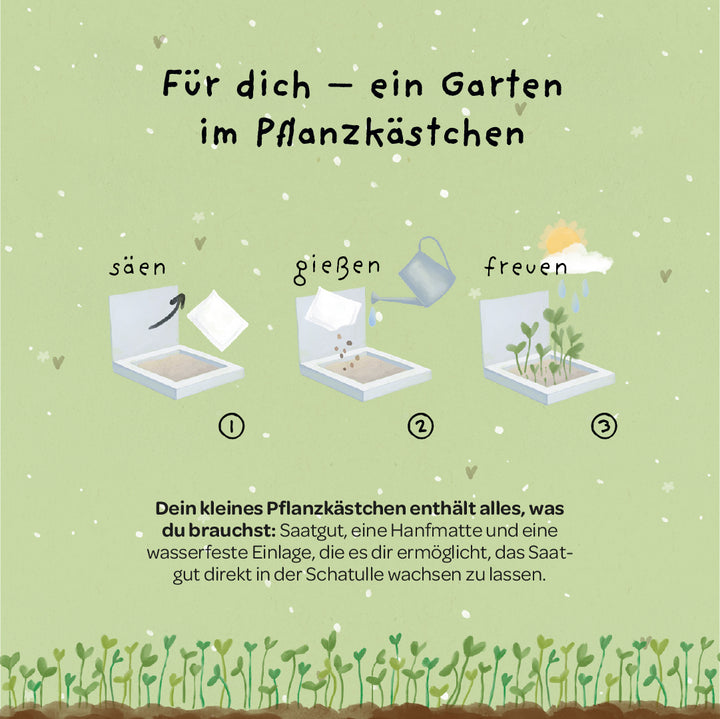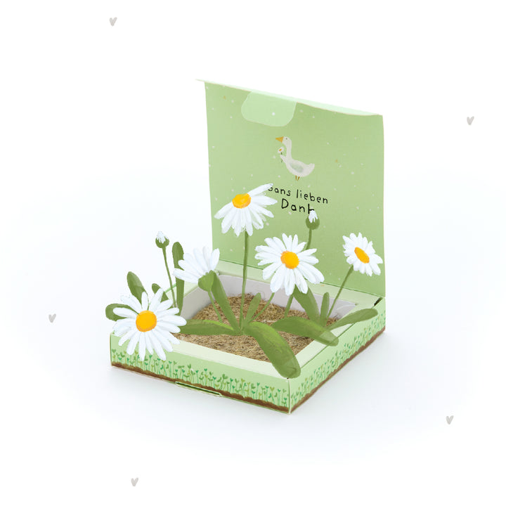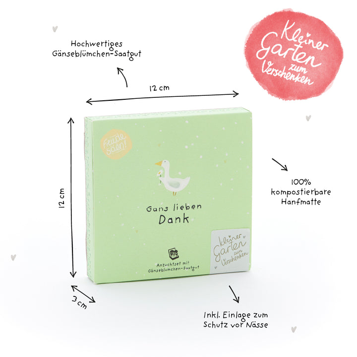 Een cadeau vol waardering : als afscheidscadeau voor de kinderopvang, als bedankje voor de hulp bij de verhuizing of gewoon zomaar – deze set zegt op een liefdevolle manier "Heel hartelijk dank". Uit het zaad groeien tere madeliefjes – als bloeiend symbool voor alle kleine en grote dingen waarvoor je dankbaar bent.
