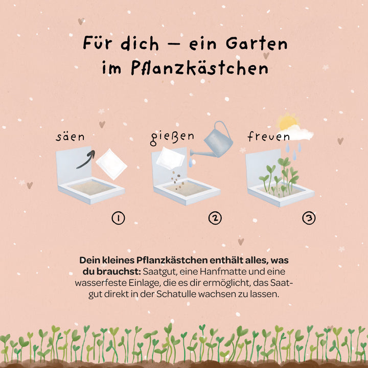Een cadeau vol genegenheid : of het nu voor een verjaardag is, als kleine verrassing tussendoor of als speciaal bedankje – met deze set geef je een klein stukje natuur en een grote dosis gevoel. Uit het zaad ontstaat een kleurrijke bloemenzee – een levendig symbool van vriendschap en verbondenheid.