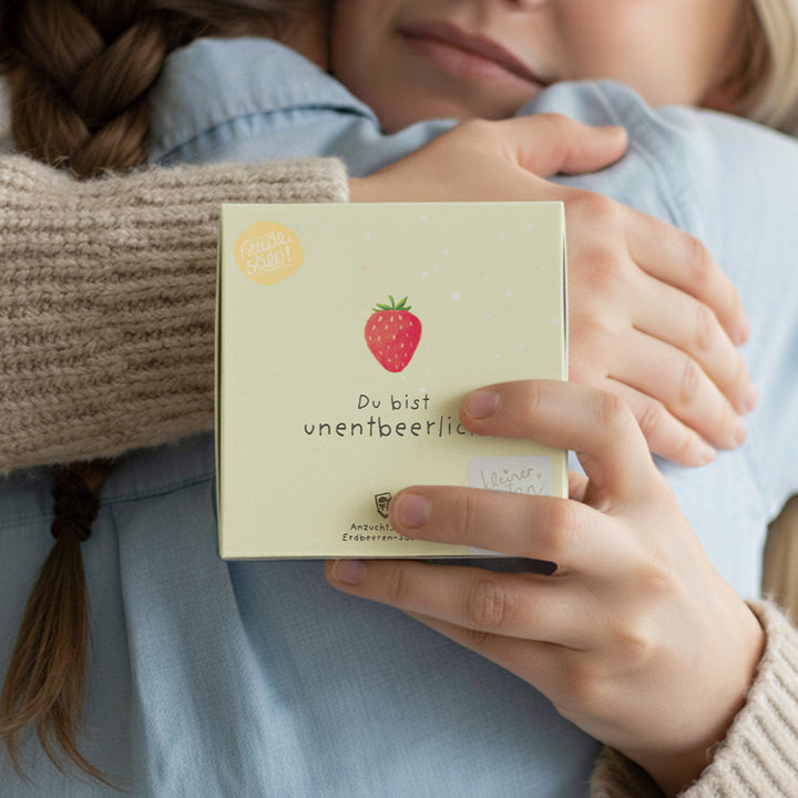 Een cadeau met smaak : of het nu een kleine attentie voor een verjaardag is, een bedankje na een gezamenlijk project of gewoon zomaar – met deze set geef je een stukje waardering cadeau. Uit het zaad groeien zoete aardbeien – een teken van hoe fijn het is om iemand aan je zijde te hebben.