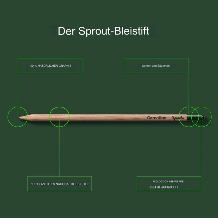 Der Samenbleistift ist eine Erfindung von Sprout. Mehr über die Geschichte von Sprout kannst du hier nachlesen. Wir beziehen den Stift allerdings über unseren Partner Grüne Werbung, einer auf nachhaltige Werbeartikel spezialisierten Agentur, die wir daher hier als Marke vorstellen wollen