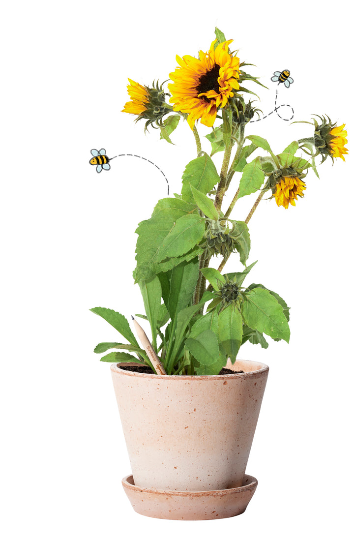 De zaadpotlood is geen gewone potlood. Nadat hij zijn dienst als schrijfgerei heeft bewezen, belandt het potloodstompje niet zoals gebruikelijk in de prullenbak, maar in een bloempot! Plant hem in, geef hem zon, water en liefde en zie hoe de voormalige potlood uitgroeit tot een prachtige zonnebloem.